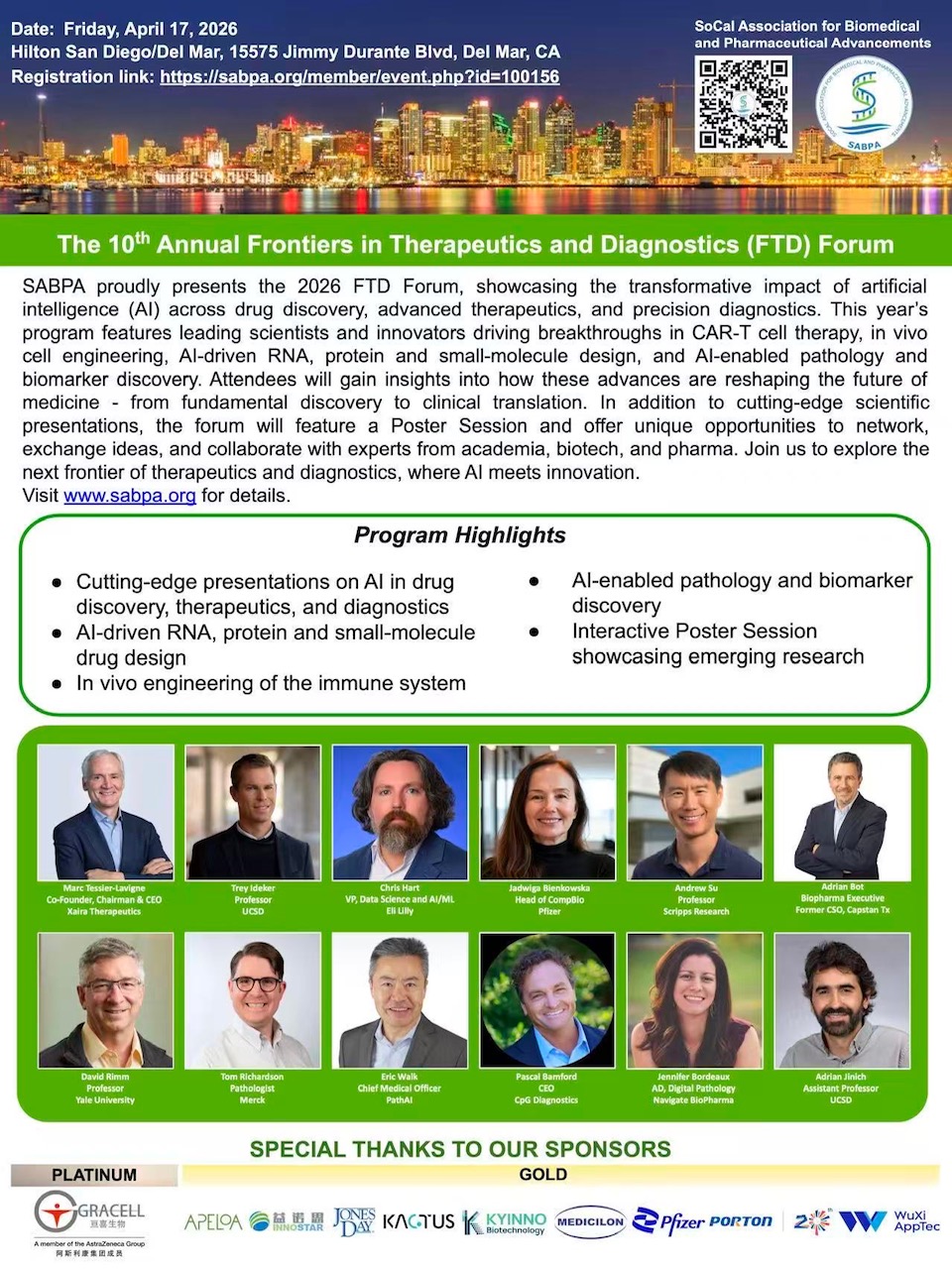 SABPA proudly presents the 2026 FTD Forum, showcasing the transformative impact of artificial intelligence (AI) across drug discovery, advanced therapeutics, and precision diagnostics.